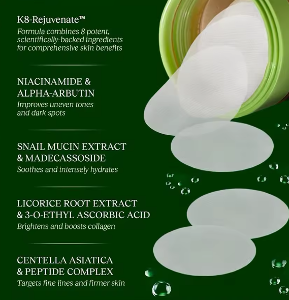 Estratto di Bava di Lumaca & Madecassoside – Idratano in profondità e leniscono la pelle, aiutando a riparare e calmare le irritazioni.