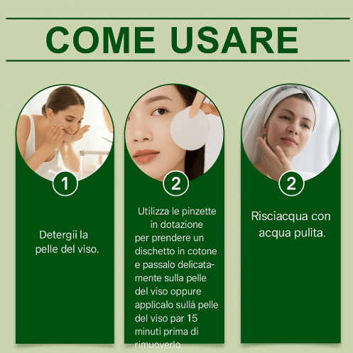 Questo prodotto è davvero facile da usare e richiede solo pochi semplici passaggi per ottenere una pelle pulita e fresca: